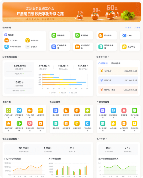 西貝自 2022 年選擇全員使用飛書,實(shí)現(xiàn)總部和門店的高效協(xié)同,并通過飛書 OKR 強(qiáng)化組織戰(zhàn)略落地,打造餐飲行業(yè)數(shù)字化最佳實(shí)踐。公司介紹西貝是中國餐飲百強(qiáng)企業(yè),旗下西貝莜面村是國內(nèi)中式正餐經(jīng)營規(guī)模最大的品牌。西貝 1988 年創(chuàng)立于內(nèi)蒙古臨河,擁有西貝莜面村、賈國龍功夫菜、西貝海鮮、九十九頂氈房四大品牌。 2020 年 6 月,入選“ 2019 年中國餐飲企業(yè)百強(qiáng)”,2021 年 12 月,入選 2021 內(nèi)蒙古民營企業(yè) 100 強(qiáng)名單。用飛書構(gòu)建一站式協(xié)作平臺, 1 秒將重要信息傳達(dá)全國 370 家門店作為全國最大的中式正餐連鎖企業(yè),創(chuàng)立 34 年來,西貝在全國 58 個城市開設(shè)了 370 家直營門店,員工 26000 人,每年服務(wù) 7000 萬消費(fèi)者。業(yè)務(wù)的快速成長,讓組織也面臨更大的挑戰(zhàn)。如何做強(qiáng)總部的專業(yè)化分工、實(shí)現(xiàn)各專業(yè)職能部門的橫向打通,增進(jìn)部門之間的協(xié)同關(guān)系,加強(qiáng)總部到全國門店的順暢溝通,成為西貝在數(shù)字化經(jīng)營過程中面臨的重要挑戰(zhàn)。完成向飛書的遷移后,西貝用飛書打通全員通訊錄,總部可即時聯(lián)系到任意門店的任意一個員工,員工間可設(shè)置精細(xì)的溝通權(quán)限管控,找人、溝通都更便捷。使用飛書會議異地溝通,支持千方同時參會,一鍵發(fā)起企業(yè)內(nèi)直播,讓會議更高效。會后飛書妙記自動生成錄像及逐字稿,1.8 萬字會議紀(jì)要只需 5 分鐘,準(zhǔn)確率高達(dá) 98% 以上,讓會議結(jié)論有據(jù)可循。西貝還將公司內(nèi)的各類文檔遷移到飛書文檔中,并使用知識庫實(shí)現(xiàn)重要信息的整合、沉淀。使用飛書前,資料沉淀在本地文件中,文件傳達(dá)到全國員工,需員工層層復(fù)制轉(zhuǎn)發(fā)、效率低。使用飛書后,可以用一個在線鏈接,和所有員工分享最新版本內(nèi)容,并支持隨時更新。文檔權(quán)限可嚴(yán)格管控,限制復(fù)制和下載權(quán)限,僅限內(nèi)部查閱,重要信息可 1 秒加急上萬人,使命必達(dá)。用飛書,僅需 1 小時搭建業(yè)務(wù)表格管理供應(yīng)商抽檢、開票工單餐飲上下游環(huán)節(jié)眾多,有大量非標(biāo)準(zhǔn)化的業(yè)務(wù)場景。這些業(yè)務(wù)場景無法通過成熟第三方系統(tǒng)實(shí)現(xiàn)業(yè)務(wù)數(shù)字化,而團(tuán)隊(duì)靠填表、傳文件、人工匯總的方式運(yùn)轉(zhuǎn),又低效繁瑣。飛書多維表格可靈活搭建輕便的業(yè)務(wù)數(shù)字化工具,系統(tǒng)“想要就能有”,最快 1 小時即可上線。比如,西貝食品安全巡視組會定期進(jìn)行供應(yīng)商、門店的抽檢。使用飛書前,所有小組成員需在 Excel 上填寫相關(guān)信息,信息層層上交、匯總,部門逐級催辦,數(shù)據(jù)統(tǒng)計報告制作繁瑣,每次抽查,往往需要 1 整個工作日專人進(jìn)行資料整理。使用飛書后,團(tuán)隊(duì)將抽檢工作通過飛書多維表格協(xié)作,使用表格分配任務(wù)、系統(tǒng)自動提醒還未提交的成員,數(shù)據(jù)分頭錄入、自動匯總,并能通過儀表盤實(shí)時展現(xiàn)數(shù)據(jù)洞察。類似的,通過多維表格搭建開票流程的協(xié)作工具,也讓西貝團(tuán)隊(duì)每年省下 65 人·天。西貝門店與客服中心的同事,經(jīng)常遇到客戶補(bǔ)開發(fā)票的需求。客戶離店后需補(bǔ)開發(fā)票,無法按常規(guī)開票流程自助實(shí)現(xiàn),往往需要客服、財務(wù)、門店多方協(xié)協(xié)助完成。使用飛書前,客服或門店接到客戶特殊開票需求后,需與客戶人工收集相關(guān)信息;部分開票信息不規(guī)范、不全面,可能需要和顧客二次溝通,效率低下、影響顧客體驗(yàn);相關(guān)信息通過即時消息與財務(wù)溝通,無法清晰掌握開票進(jìn)度,協(xié)作成本高;每次開票信息都需要財務(wù)系統(tǒng)中人工確認(rèn)匹配,操作易出錯;使用飛書后,客戶點(diǎn)擊客服提供的鏈接、或在門店掃碼,填寫飛書表單,可準(zhǔn)確提交開票信息;系統(tǒng)自動通知財務(wù)同事處理開票;多維表格內(nèi)自動根據(jù)客戶所在門店匹配對應(yīng)開票信息,省去人工確認(rèn);客服完成開票后,系統(tǒng)自動提醒客服或門店辦結(jié)情況。從消費(fèi)者到門店員工,再到總部客服、財務(wù)團(tuán)隊(duì),使用多維表格無縫連通,信息效率大大提高。用飛書搭建學(xué)習(xí)群,自動化沉淀組織洞察與思考西貝倡導(dǎo)建設(shè)學(xué)習(xí)型組織,在高管團(tuán)隊(duì)中建立“日清日高”學(xué)習(xí)群(今天完成的事情必須比昨天有提高,明天的目標(biāo)必須比今天更高),鼓勵每位高管每日分享工作心得體會,并將內(nèi)容匯總、沉淀西貝文化,持續(xù)擴(kuò)大影響力。使用飛書前,西貝需安排專人負(fù)責(zé)匯總?cè)簝?nèi)消息,員工需逐條手工匯總,費(fèi)時費(fèi)力,資料沉淀在本地文件中,難傳播、檢索。使用飛書后,飛書群內(nèi)機(jī)器人可將群消息自動同步到多維表格中,并自動生成精致的畫冊視圖,員工打開多維表格可隨時查看最新分享內(nèi)容,用工具固化文化,讓思考形成文化資產(chǎn),實(shí)現(xiàn)企業(yè)文化的有效沉淀、落地,據(jù)統(tǒng)計,每年也可節(jié)省 23.5 人·天的人工摘錄、匯總時間